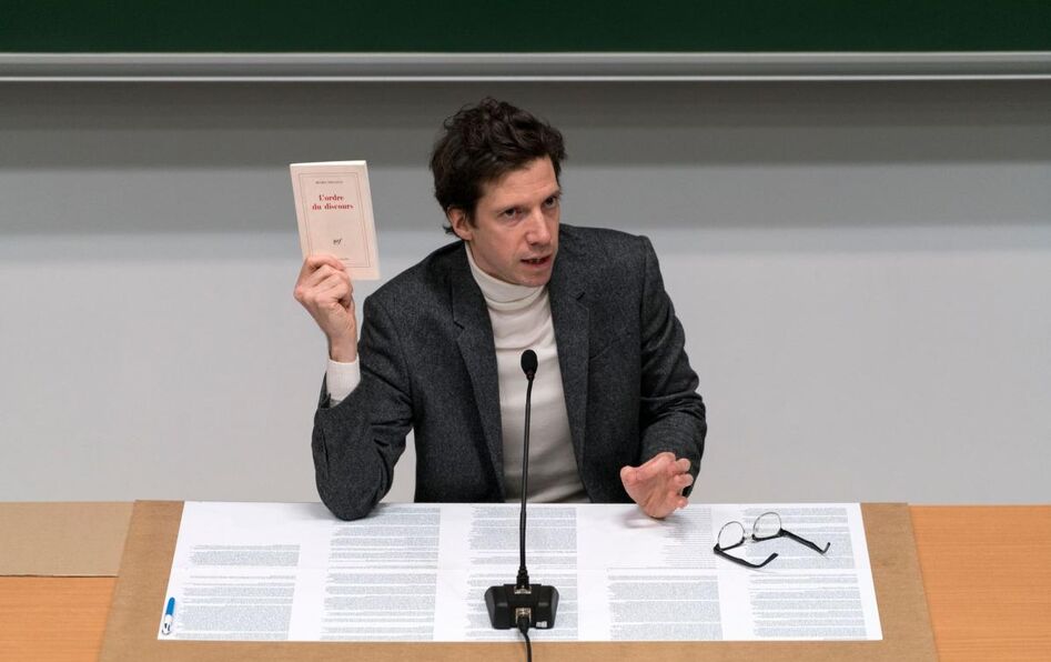 La metteuse en scène Fanny de Chaillé propose de s'installer sur les bancs de la fac pour assister au Désordre de la leçon, un cours inédit de Michel Foucault. Interprété par le comédien Guillaume Bailliart, ce spectacle actuellement en tournée explore joyeusement avec les écarts entre pensée et parole.