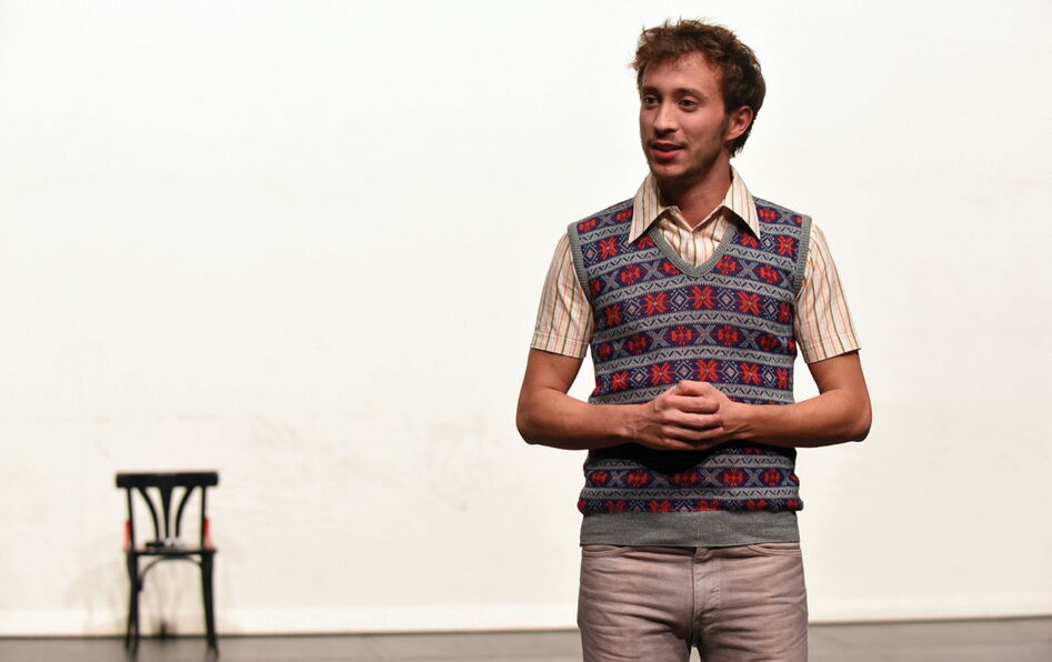 Lever le pouce, faire du stop, entrer dans une voiture. Rien d’exceptionnel dans les années 1970. Sauf lorsque le conducteur est un chauve à lunettes d’acier, professeur au Collège de France : Michel Foucault. Le jeune passager, Thierry Voeltzel, est un inconnu et il le restera. Mais ensemble, ils finissent par écrire un livre d’entretiens, après que ce trajet pour Caen partagé durant l’été 1975 a créé une sympathie qui s’est transformée en amitié intime. Vingt ans et après paraît en 1978. Il ausculte, une décennie après mai 1968, l’écart générationnel qui sépare un jeune étudiant en japonais, homosexuel et militant d’extrême gauche et le philosophe star, de trente ans son aîné. Pierre Maillet a décidé d’adapter ce texte au théâtre, sous le titre Letzlove – anagramme de Voeltzel. Il interprète le rôle de Michel Foucault. Maurin Olles (photo) donne corps aux réponses de Thierry Voeltzel, il incarne « le garçon de 20 ans ». L’amitié conduit les deux hommes à voyager dans l’Iran révolutionnaire en 1978, comme journalistes, puis à participer ensemble aux débuts du magazine Le Gai Pied, à destination des homos.