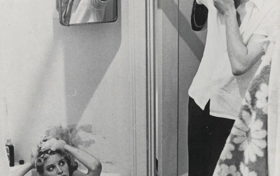 Bowie, on le sait, aime à se démultiplier : il y a la fantaisie, l’esprit de cirque de son transformisme, il y a aussi, c’est un peu différent, son art consommé de la réflexion. Le thème de la réflexion et du double hante le rock, art peut-être plus confronté qu’aucun autre aux affres de la subjectivité et de l’incarnation. En 1976, David Bowie tourne au cinéma son premier rôle principal : il est le Thomas Jerome Newton de L’Homme qui venait d’ailleurs, filmé par Nicolas Roeg. Alien dissimulé sous les traits d’un humain qui cherche à récupérer sur Terre assez d’eau pour sauver sa propre planète, Bowie-Newton fait la rencontre de Mary-Lou qui l’initie au quotidien des hommes. La scène de la salle de bains, cadrée plus haut que dans ce photogramme, le montre troublé, invité par la fille à entrer dans la pièce, et vérifiant discrètement dans le miroir la bonne tenue des fausses pupilles qui dissimulent ses yeux d’extraterrestre. Le reflet qui dédouble cache un autre double, seulement visible à l’œil de celui qui se voit. Bowie aime jouer des miroirs. Ces derniers traversent comme un accessoire métaphysique toutes les périodes de sa création. Dans le livret de son récent best of, Nothing Has Changed, Everything Has Changed, c’est le leitmotiv qui structure, plus encore que son transformisme, toutes ces années écoulées depuis “Changes” (Hunky Dory, 1971). Miroir déformant, miroir de poche, reflet d’un rideau translucide, l’œil vairon de Bowie signale toujours dans le reflet une autre lecture. Mais revenons à ce photogramme : Bowie, les yeux détournés, la main pudiquement portée à la bouche mime un Pierrot innocent, confus de se trouver là, tandis que la fille fronce les sourcils. La scène évoque un Marivaux expressionniste, que Bowie pervertit à un second degré par le montage : dans le bain, l’eau a laissé place à la matière solide du sol, et, dans le miroir, Newton a gardé son expression inquiétante d’alien déguisé en humain, reflet frontal impossible, dissymétrique du personnage en pied qui brandit pourtant le miroir comme s’il orchestrait la mise en scène. Entre naïveté et manipulation, trait d’humour et connotations plus dérangeantes, le tout forme un parangon de la réflexivité bowienne. De Ziggy Stardust au Thin White Duke, la star, regardée de tous, en se regardant, éternellement se change. Ce trouble dans la dualité, cette réflexion qui rend le sujet suspect à lui-même, j’aime à l’entendre dans “Sense of Doubt” (Heroes, 1977), instrumental ambient composé avec Brian Eno, avec ses lignes mélodiques symétriques et obliques, comme contradictoires. Trente-six ans après, The Next Day reproduit la couverture de Heroes, mais un carré blanc opaque occulte le portrait devenu mythique, comme pour couper court à l’infinité des réflexions, et à l’illusion d’immortalité qu’elles induisent. À moins que Bowie n’y réfléchisse cette fois la disparition même de son image. »