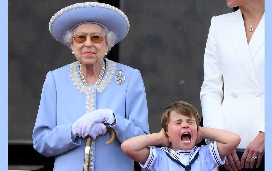 - Trois générations, trois rapports aux émotions. On sait que l’excentricité, tout comme les costumes bien colorés de la reine, est l’un des attributs de la couronne britannique. Mais le jeu des expressions et des regards de la reine mère, de la femme du prince William Catherine (Kate) Middleton, et des deux enfants de cette dernière Charlotte (7 ans) et Louis (4 ans), donne un aperçu saisissant de notre manière, différente selon les âges et les époques, de gérer nos émotions. Élisabeth regarde tranquillement la foule, ou plutôt se laisse regarder. Kate, elle, affiche un sourire ravageur, les yeux tournés vers l’arrière-grand-mère de sa progéniture. Au passage des avions de la Royal Air Force, la petite Charlotte, l’air émerveillé, cligne des yeux vers le ciel. Quant au benjamin Louis – dont on attend le règne avec impatience tant il aime multiplier les insolences et les grimaces – il se bouche les oreilles en hurlant…