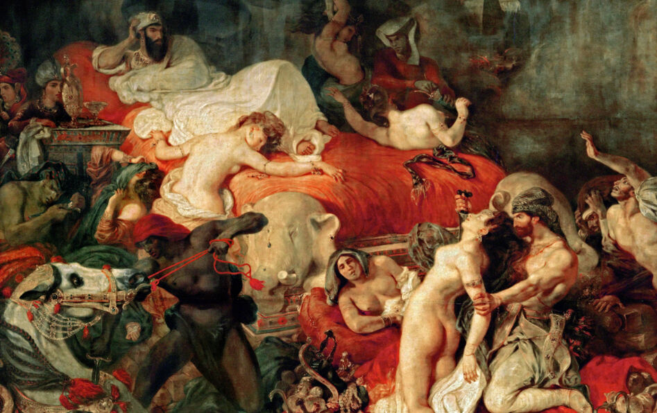 Pas facile d’être indifférent, au fond. Regardez le célèbre tableau d’Eugène Delacroix, La Mort de Sardanapale (1827). Inspiré par un roman de Byron, ce chef-d’œuvre du romantisme illustre l’idée que l’indifférence relève de l’héroïsme. Ne voulant rien laisser à ses ennemis, vaincu, le roi assyrien Sardanapale décide de détruire tout ce qu’il possède : esclaves, femmes, chevaux, or et argent, avant d’embraser son palais et d’y mourir. Le panache le dispute ici à l’insensibilité, sa liberté se faisant terrible et son indifférence sublime.