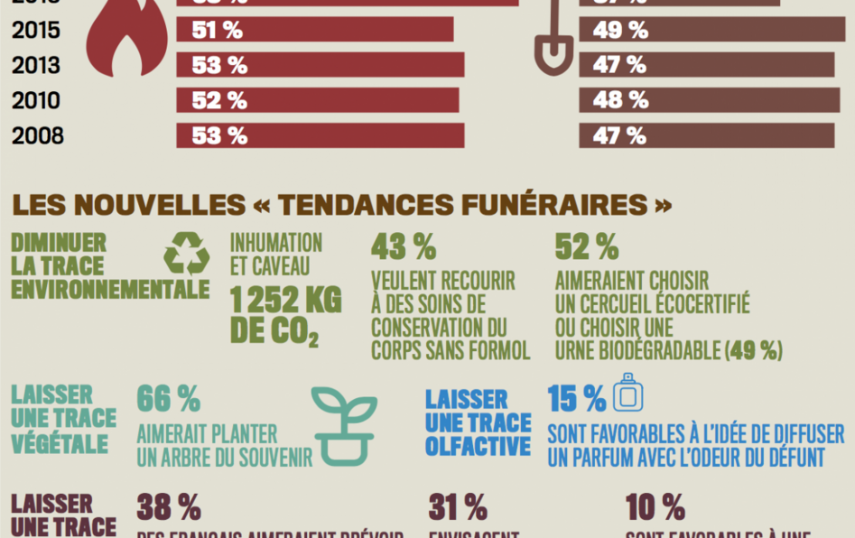 Quelque chose plutôt que rien ! À l’heure de la grande recomposition des usages funéraires, qui voit la crémation prendre peu à peu le dessus sur l’inhumation, et les modes alternatifs, écologiques ou numériques se développer, la volonté manifeste de réduire la place qu’occupent les morts n’empêche pas que subsiste le souci d’en préserver une trace, si subtile soit-elle. Selon les dernières enquêtes publiées par les services funéraires de la Ville de Paris, 42 % des Français indiquent « ne pas vouloir laisser de traces sur Terre » pour « ne pas prendre de place ». C’est la raison pour laquelle l’incinération est de plus en plus prisée : elle réduit la place occupée par le corps des morts, mais aussi leur empreinte environnementale. Un enterrement avec construction d’un caveau équivaut, en effet, en terme d’empreinte carbone, à cinq crémations. Cependant, au-delà de cette alternative, d’autres usages s’inventent qui dessinent la recherche d’une empreinte plus souple. La trace « végétale », avec l’humusation (encore interdite en France), équivaut à un retour littéral à la terre par une transformation du corps en « compost ». Mais, toujours selon la même enquête, on voit aussi monter la digitalisation des traces avec « des murs numériques du souvenir », tandis que certains pensent même à une trace « olfactive » qui permettrait de sentir l’odeur du défunt.