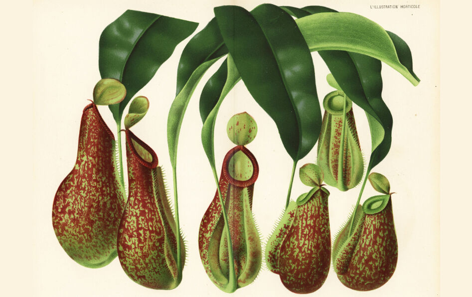 « Les Nepenthes sont un genre de plantes tropicales originaires d’Asie du Sud-Est – vous avez certainement déjà croisé leurs pièges en forme d’urnes en jardinerie. C’est au botaniste suédois Carl von Linné qu’elles doivent leur nom scientifique – nê-pénthos, “pas de chagrin” (νηπενθής), en référence au breuvage léthargique que Pâris sert à Hélène après l’avoir arrachée à son pays natal (un peu, d’ailleurs, comme les Nepenthes) pour lui faire oublier sa tristesse : “Si ce n’est pas le Nepenthes d’Hélène, ce le sera certainement pour tous les botanistes. Quel botaniste ne serait pas rempli d’admiration si, après un long voyage, il découvrait cette plante merveilleuse ? Dans son étonnement, les maux passés seraient oubliés” (Hortus cliffortianus, 1738).